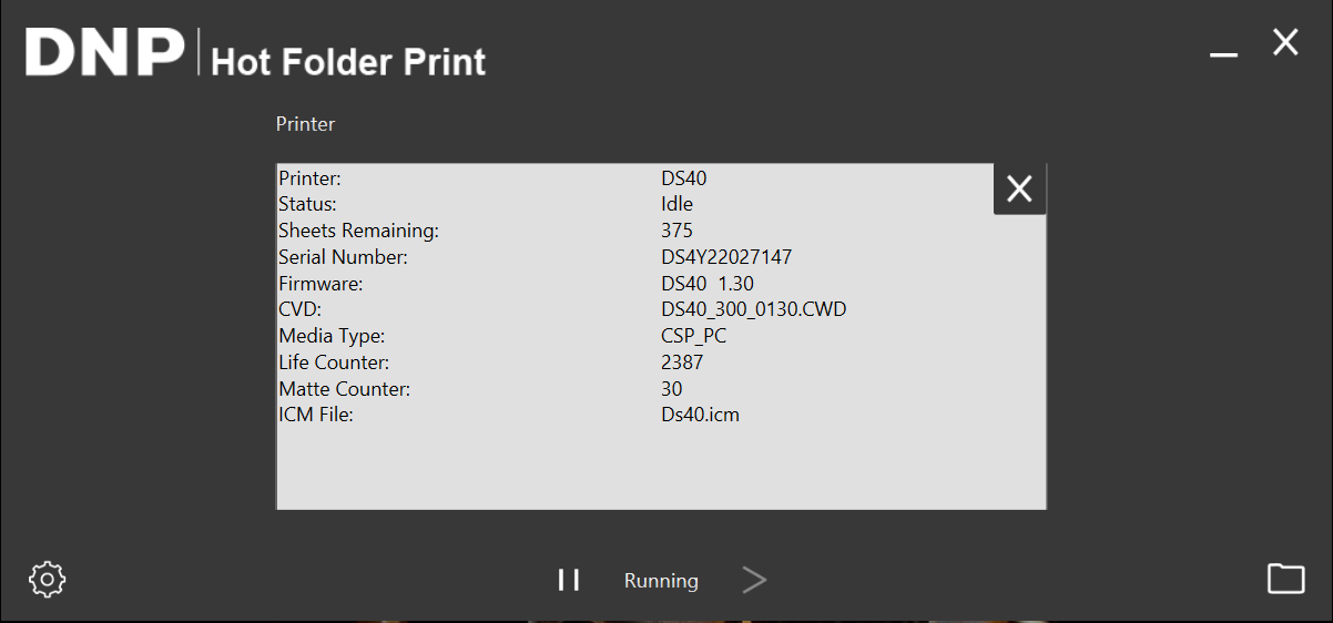Когда совместимый файл изображения копируется в папку мониторинга, он отсылается на распечатку на подключенный принтер. Каждая папка мониторинга файлов изображения имеет простое наименование – 10х15, 15х20 или 20х30 – по формату выполняемой печати. Instant Print Tool отпечатывает один экземпляр скопированного в папку файла изображения и переносит файл изображения в папку архива. Папки архива автоматически создаются каждый день использования ПО, чтобы помочь в организации файлов изображения и чтобы их можно было легко найти для повторной печати.